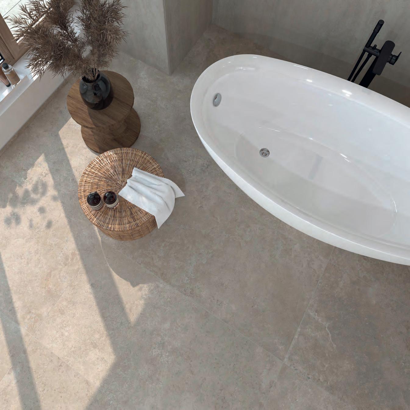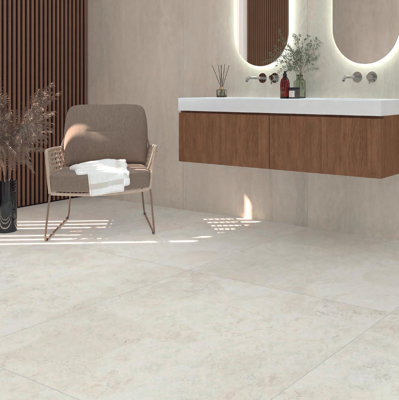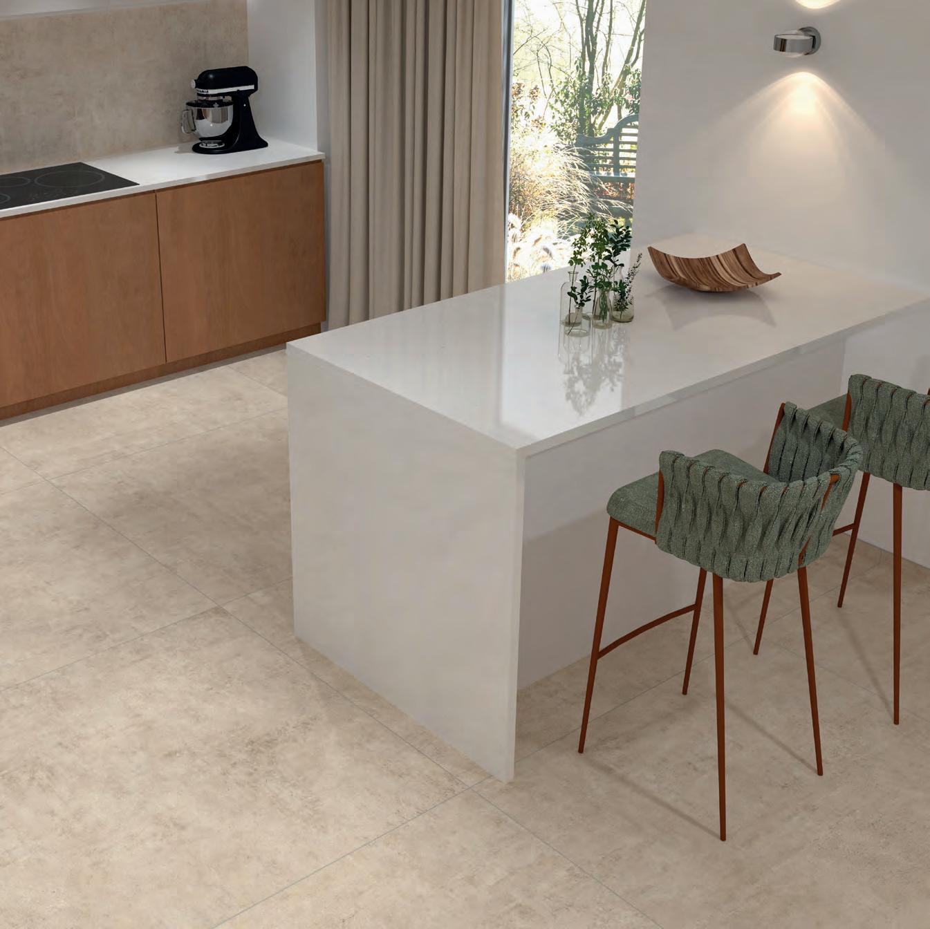 Boden: COLUMBIA Soft Beige, 120 × 120 mm • Art.-Nr. 82 120120 644