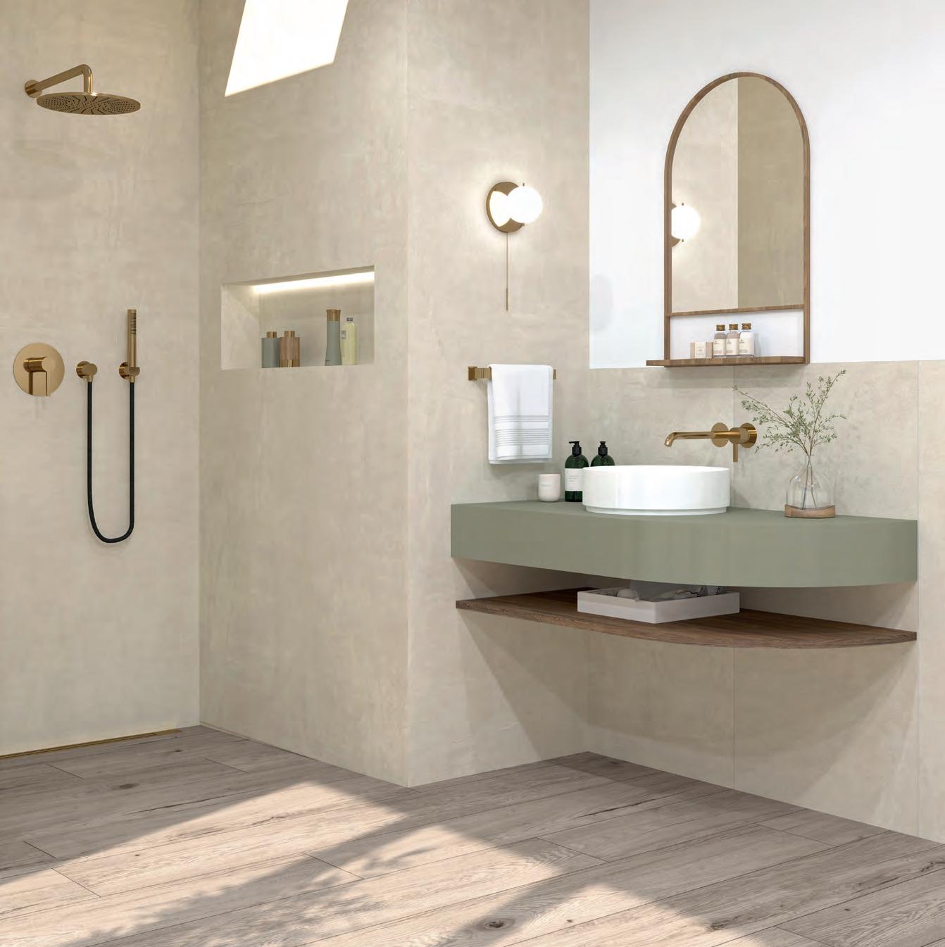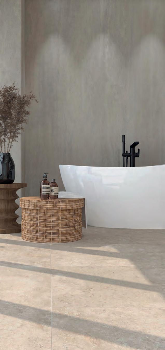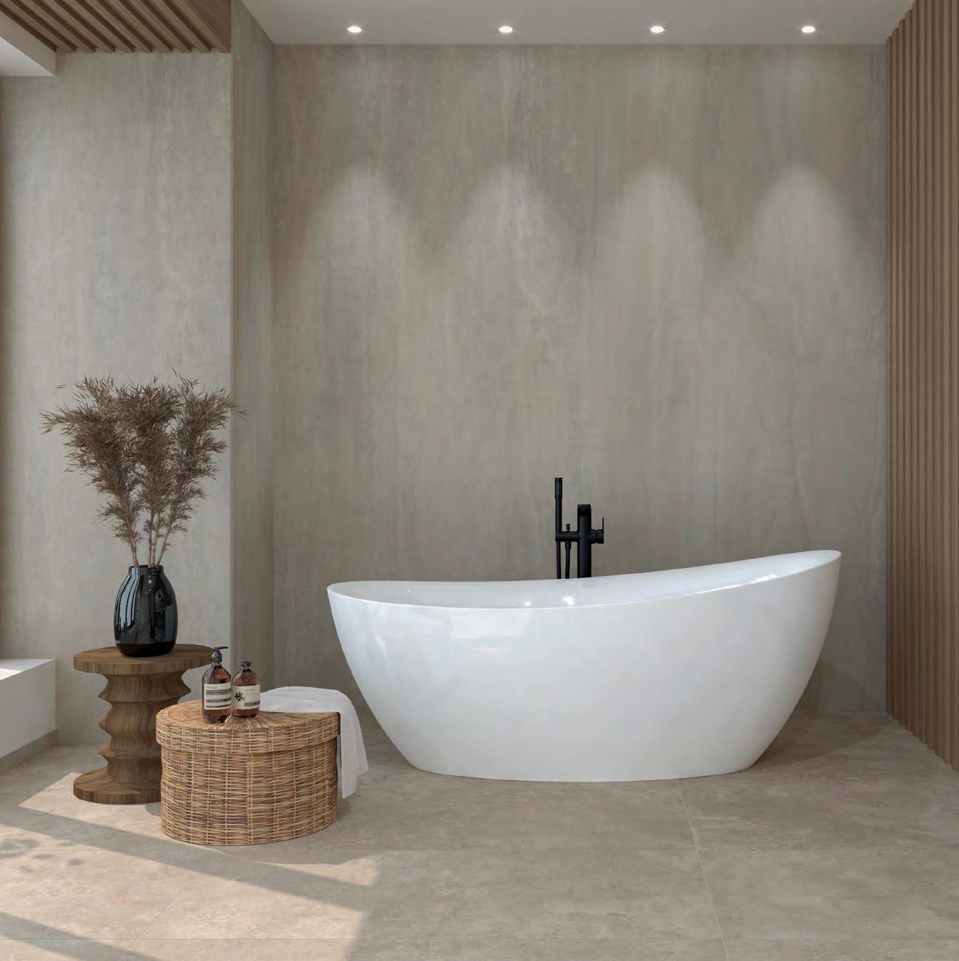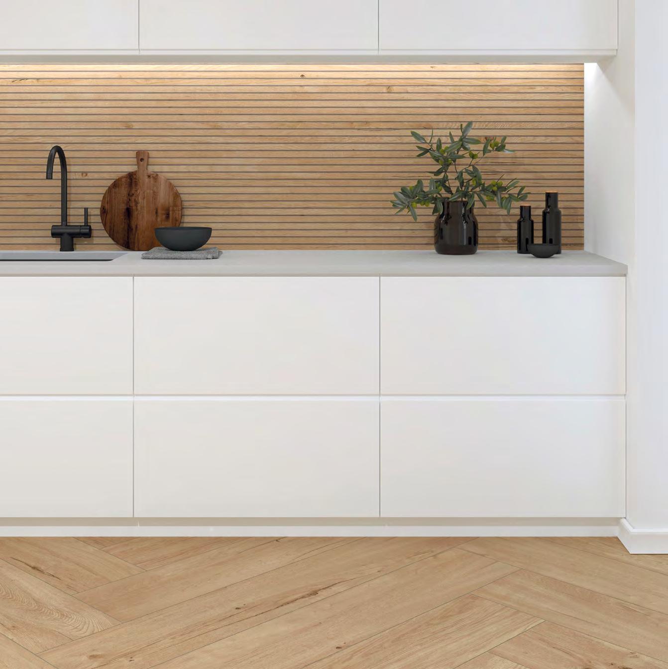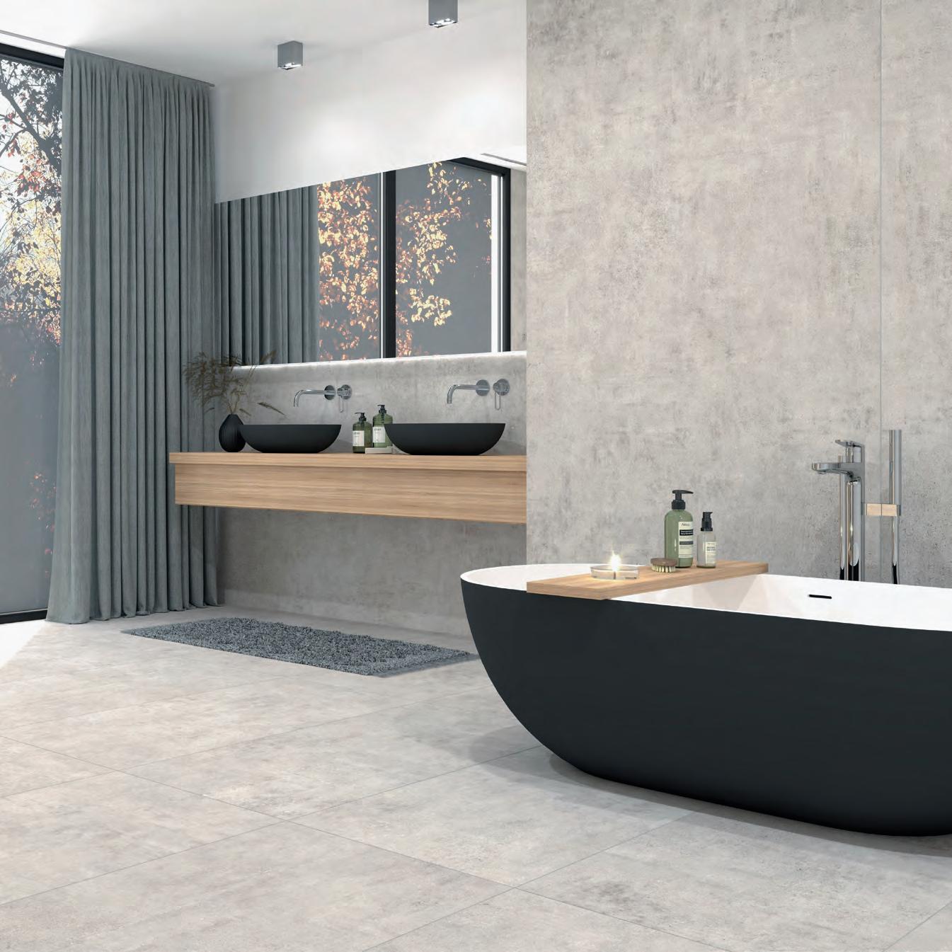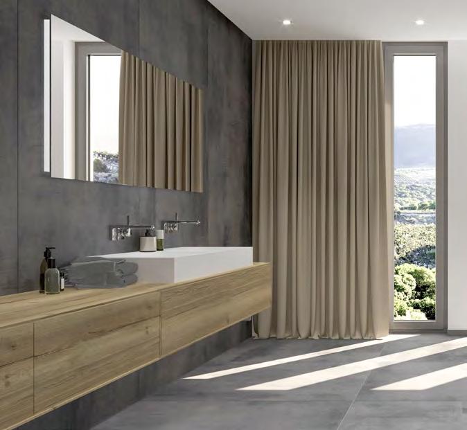 Für großzügige Rauminszenierungen werden die Farbtöne Natur und Hell zudem im beeindruckenden XXL-Format von 260 × 120 cm angeboten, das ruhige Flächenbilder mit minimaler Fugenwirkung ermöglicht.