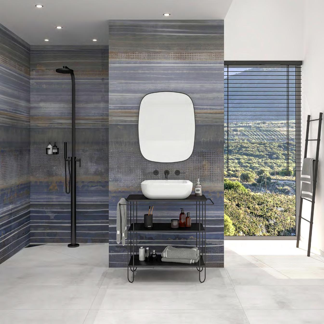 Die rektifizierten Wandfliesen im XXL-Format, bieten in den Farbvarianten Swing Blue und Jazz Black eine vielseitige Basis für beeindruckende, kreative Raumkonzepte.