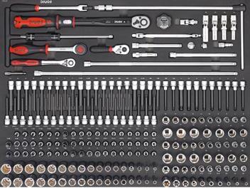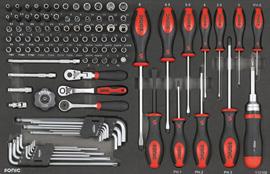 NEXT S8 wózek narzędziowy 7 szuflad. 3 szuflady wypełnione narzędziami, 207 sztuk.