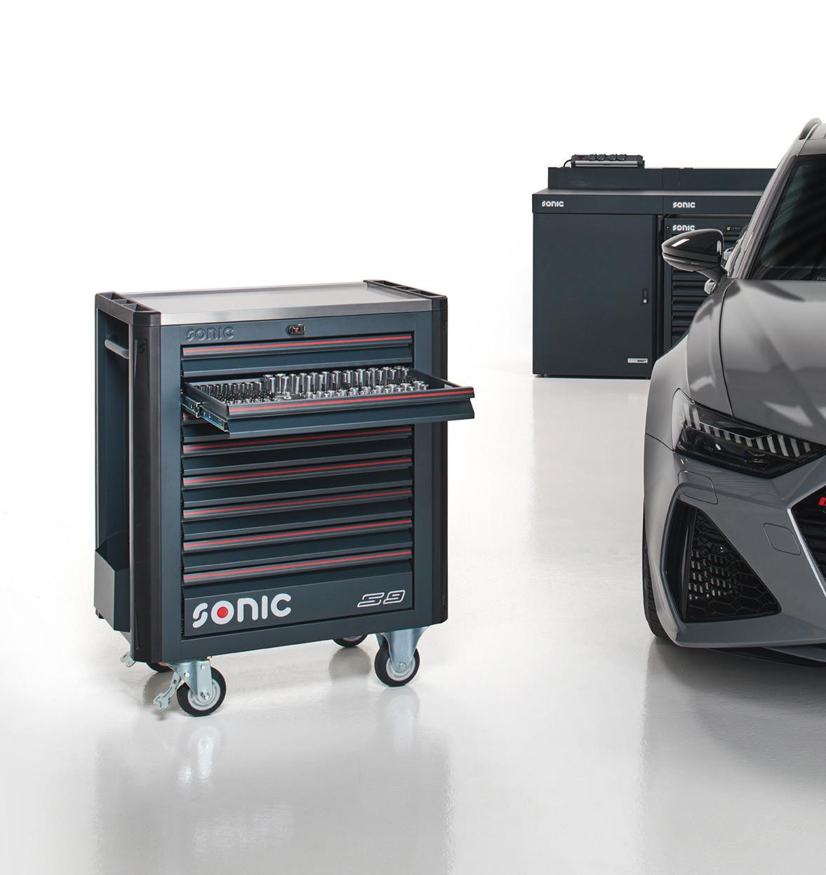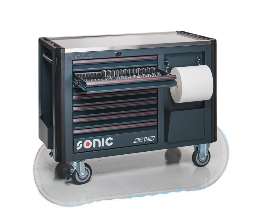 Sonic oferuje wyposażone wózki dla każdego poziomu zaawansowania. Nasz asortyment klasyfikujemy na podstawie czterech etykiet wskazujących zalecaną konfigurację zestawu narzędzi: Basic, Intermediate, Advanced i Expert.