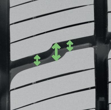 Specialios 3D lamelės užtikrina puikų vairavimą ant slidžios kelio dangos, o pagalbiniai plyšiai, įkomponuoti į protektoriaus raštą, užtikrina nepriekaištingą sukibimą posūkių įveikimo metu.