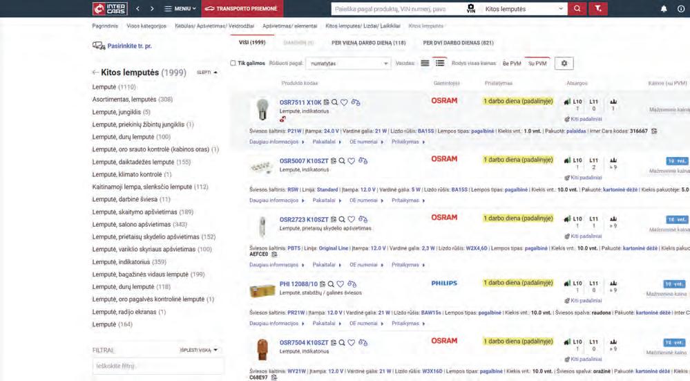 GALIMA RASTI „INTER CARS“ ASORTIMENTE: