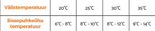 Tabel 1 - Sissepuhkeõhu temperatuuriväärtused välistemperatuuri suhtes