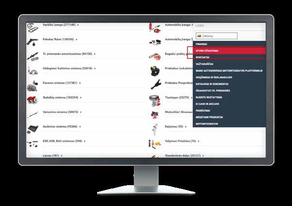 Tiesioginė prieiga prie platfor mos „Motointegrator.com“. De šinėje pusėje išskleidę kliento numerį spustelėkite „MANO AU