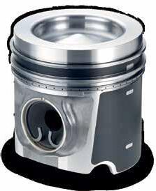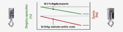varikliuose) yra paremtas faktu, kad stūmoklio karūna dyzeliniame variklyje įkaista iki kur kas aukštesnės temperatūros nei benzininiame variklyje. Na ir ši nuostabi technologija jau yra taikoma lengvuosiuose automobiliuose. Čia svarbu yra tai, kad plieninis stūmoklis su 30 % sumažintu suslėgimo aukščiu (gerokai svarbesniu nei visas stūmoklio aukštis) būdamas pilnai sukomplektuotas (stūmoklis + žiedai + pirštas + piršto fiksatoriai) yra 5 % lengvesnis, palyginti su aliumininiu, kurį jis pakeitė variklyje. Pagalvokime, kad penkių procentų sumažinimas dauginamas iš apsukų skaičiaus, o taip pat iš cilindrų skaičiaus… Tai juk dešimtimis kilogramų mažesnė apkrova pačiam varikliui. Atsiminkime, kad lengvesnis stūmoklis tai taip pat„downsizingo“ pavyzdys… Prisiminkime, ką
