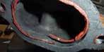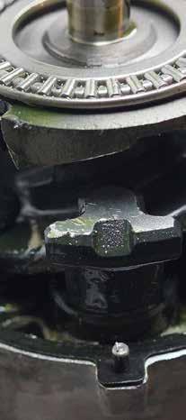 rinti tam, kad dugno temperatūra (kuri dyzelyje siekia net iki 400 °C) būtų mažinama. MAHLE sugalvojo kai ką labai sunkiai įgyvendinamo, bet su labai geru efektu. Pažvelkite į paveikslėlius 2a ir 2b. Jie vaizduoja stūmoklio viršutinės dalies skerspjūvį su aušinančio kanalo forma. Būtina atkreipti dėmesį į tai, kad pav. 2a vaizduoja šios formos evoliuciją bei jos įtaką stūmoklio dugno temperatūros mažinimui. Standartinė forma čia yra atspirties tašku. Pjūvis„viduryje“ – tai dugno temperatūros sumažinimas 10 °C. Tai jau daug, bet vis galingesni dyzeliniai varikliai reikalauja dar daugiau. Taip atsirado visiškai naujas kanalas, kuris leidžia gerokai didesniam alyvos kiekiui atlikti aušinimo darbą. Alyva, patenkanti pro tepimo angą, atlieka labai gerą darbą.