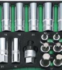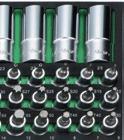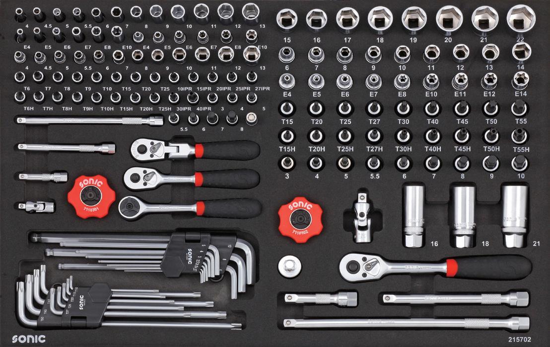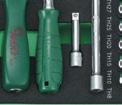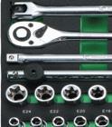 Pea 1/4“, 11, 12 mm, bitiadapter 1/4”, reduktsioon 3/8” ja 1/4”, dünamomeetriline võti 3/8“ – vahemik 2…10 N·m, dünamomeetrilise klapivõtme vahemik 0,45 N·m, kärukate.