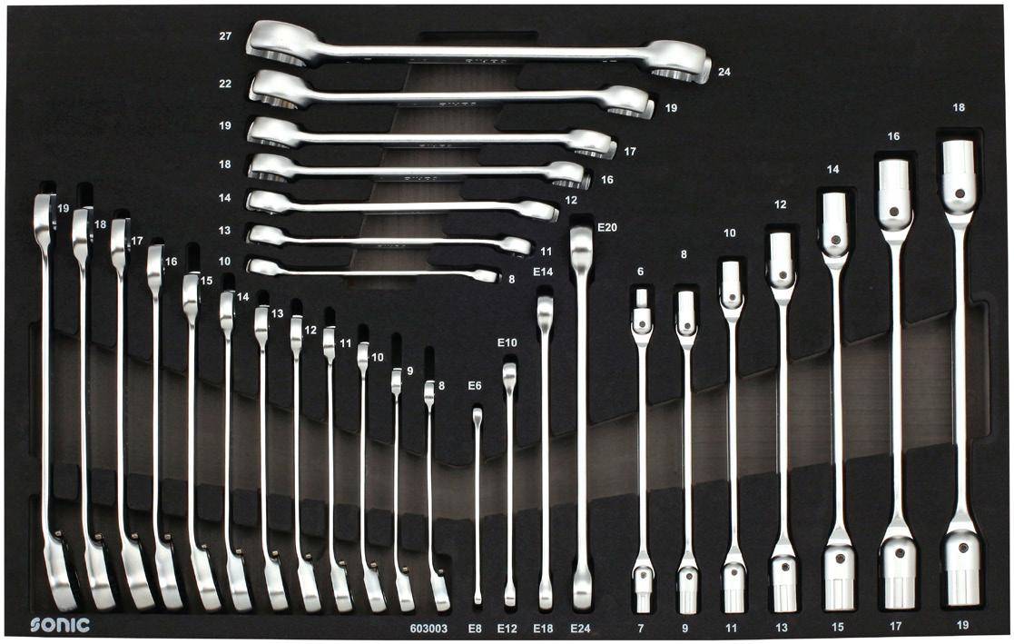 Kesklukustusmehhanismiga ja avamise blokeeringuga (korraga saab avada ainult ühe sahtli). Varustuses 520 pro tööriista, mis on ette nähtud veoautode ja kommertssõidukite hoolduseks.