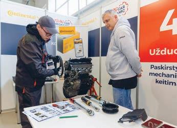 gedimų. „Elring“ atstovai paprašė pakeisti alkūninio veleno galinį riebokšlį. „Contitech“ užduotis – teisingai pakeisti paskirstymo diržą pavyzdiniam „Volkswagen“ 1.6/2.0 16V TDI varikliui. „Meyle“ stende teko padirbėti su automatinės transmisijos diagnostika ir remontu: identifikuoti, kodėl „S211 Mercedes-Benz“ automobilio pavarų dėžė veikia avariniu režimu. Konkurso partneriai iš„Schaeffler“ vertino, kaip studentai susidoroja su DMF smagračio ir sankabos keitimo iššūkiu. Vytauto Didžiojo universiteto Žemės ūkio akademijos atstovai tikrino studentų įgūdžius naudojant įvairius matavimo įrankius, vertinant variklio dalių būklę. ZF stende laukė akistata su sunkvežimio pneumatine sistema – pagal pateiktas schemas ir informaciją per 45 minutes reikėjo teisingai surinkti ir sujungti komercinės transporto priemonės pneumatinės sistemos komponentus.„Febi“ atstovai paprašė atlikti stabdžių sistemos apžiūrą, išmatuoti komponentų parametrus, patikrinti stabdžių skysčio kokybę ir lygį. „Mann Filter“ vertino, kaip jaunimas orientuojasi filtravimo sistemose, o „Varta“ –automobilio energetikos ūkyje: gamintojas paprašė atlikti įkrovimo sistemos ir akumuliatorių diagnostiką ir pakeisti bateriją.