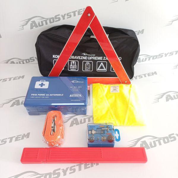 Set obavezne opreme u plastičnoj vrećici (ref. prsluk, trokut, uže za vuču, prva pomoć-mala, set sijalica)