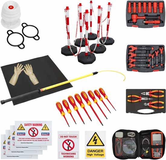 • Ten zestaw zawiera szeroką gamę narzędzi i wyposażenia, które będą wymagane, aby umożliwić technikom samochodowym bezpieczne wykonywanie prac przy tego typu pojazdach.