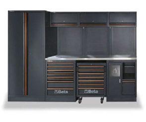 Vozík na náradie s vybavením pre TRUCK, 448 ks 8 zásuviek s centrálnym zámkom a zaistením proti otvoreniu viac ako jednej zásuvky, - kvalitná séria pre profesionálov PRO LINE, - guličkové ložiská zásuviek, - nosnosť 45kg/zásuvku, celkovo vozík 6480kg, - 2 pevné, 2 otočné kolieska s brzdou, - bočná priehradka na chémiu,náradie v penových modulárnych výliskoch,