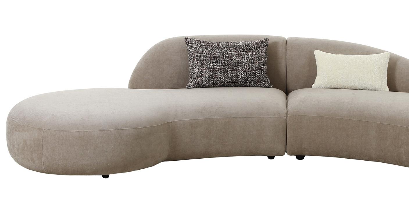 Introducing a collection of exquisite furniture pieces in taupe fabric that are sure to elevate your living room or trade interior. Unparalleled comfort and sophisticated style are inviting you to relax and unwind in opulent surroundings. With streamlined silhouettes and meticulous craftsmanship, these trendy design pieces are here to redefine modern luxury indeed. The bold curves and soft pleasurable fabric make for a contemporary feel and statement design.
