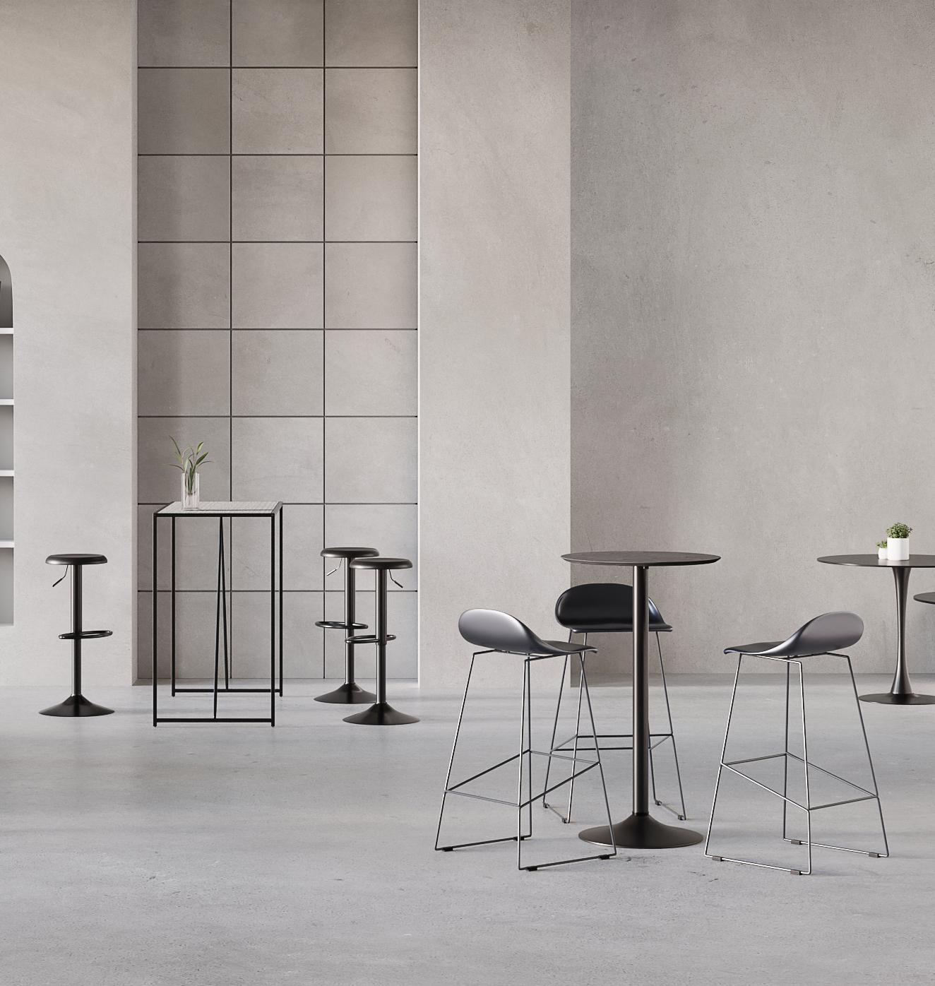 ‘SOCIALE RUIMTE’ is een ontwerpconcept voor ruimtes waar mensen samenkomen en op een ongedwongen en vlotte manier met elkaar in contact kunnen komen. De nadruk ligt op het creëren van een uitnodigende sfeer die gesprekken aanmoedigt, zonder dat hier per se zachte stoffen zoals kussens en dekentjes aan te pas hoeven te komen. Met zwart meubilair met rondingen, hoge tafels en afgeronde hoeken creëert dit ontwerpconcept stijlvolle sociale ruimten. De combinatie van lichtgrijs en zwart voegt een vleugje elegantie toe, terwijl het minimalistische ontwerp ervoor zorgt dat de ruimte overzichtelijk en visueel aantrekkelijk blijft. Het resultaat is een ruimte die energie en enthousiasme uitstraalt en gasten uitnodigt om te socializen.