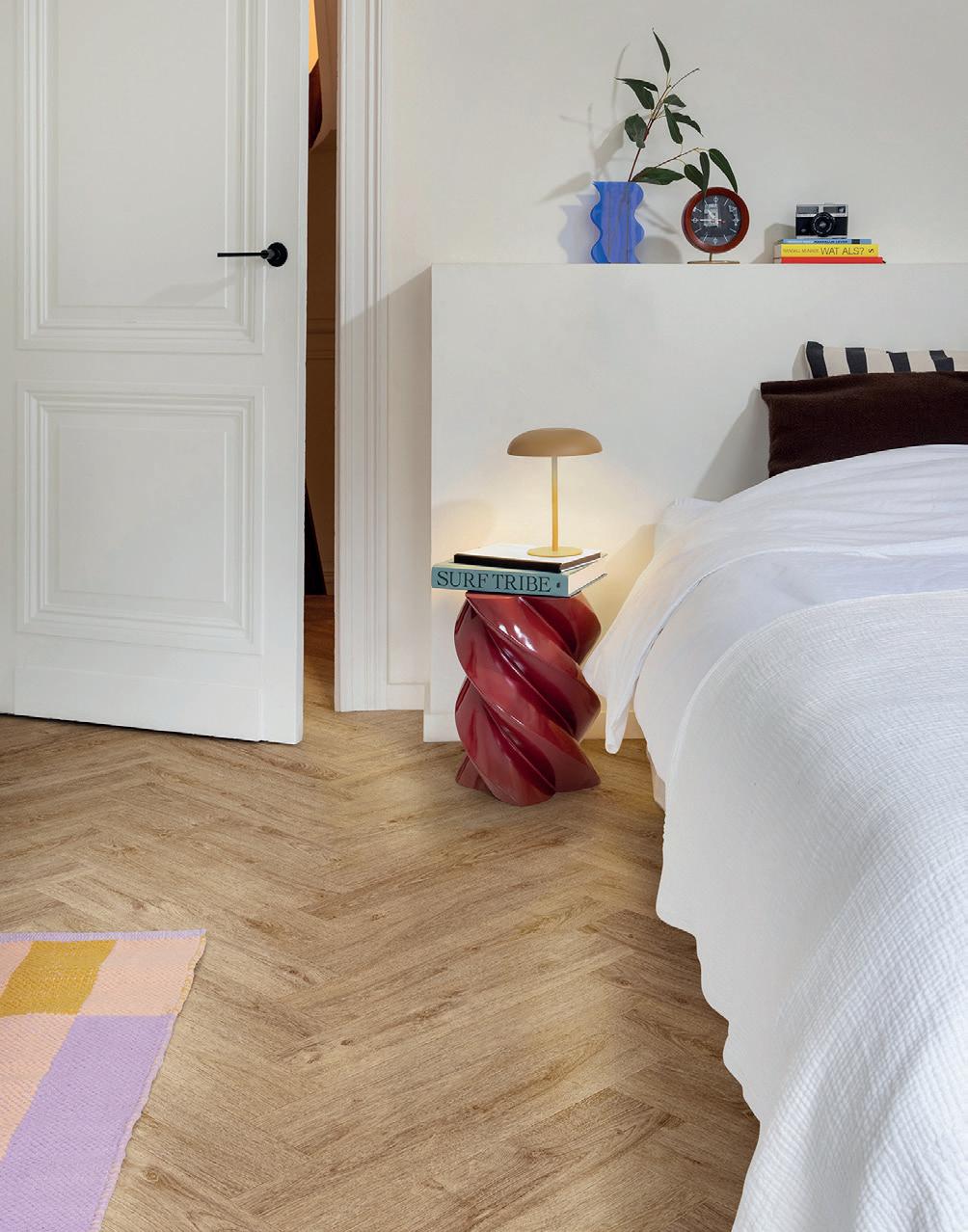The expanded Knight Tile collection, the brand’s most accessible range, recently introduced 13 new designs: six wood planks, four herringbones and three stone tiles. These new designs effortlessly balance affordability and style, offering a desirable range of colours