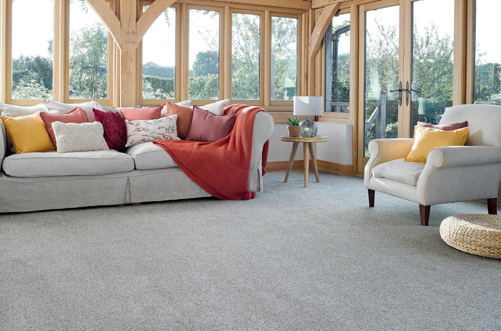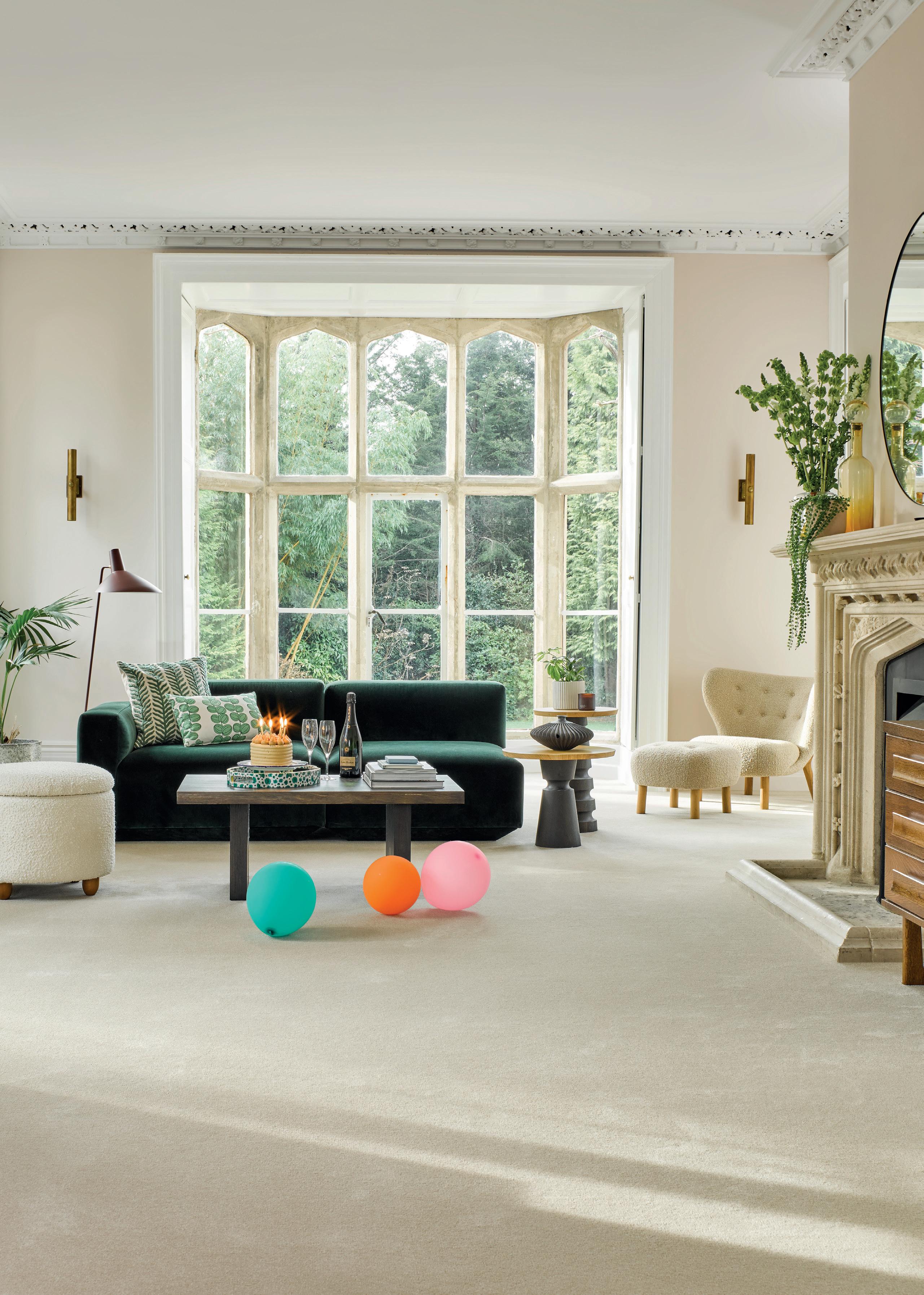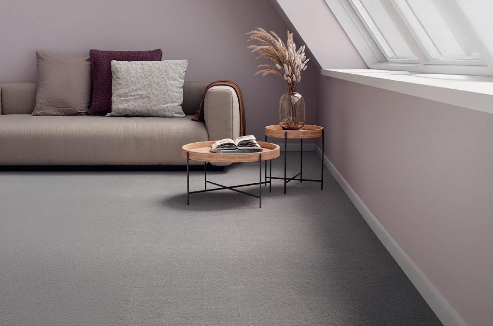 underfoot and a denser, more refined appearance. Now available in an updated palette of tri-colour heather shades, the British-made carpet also comes with a 10-year stain and wear guarantee.