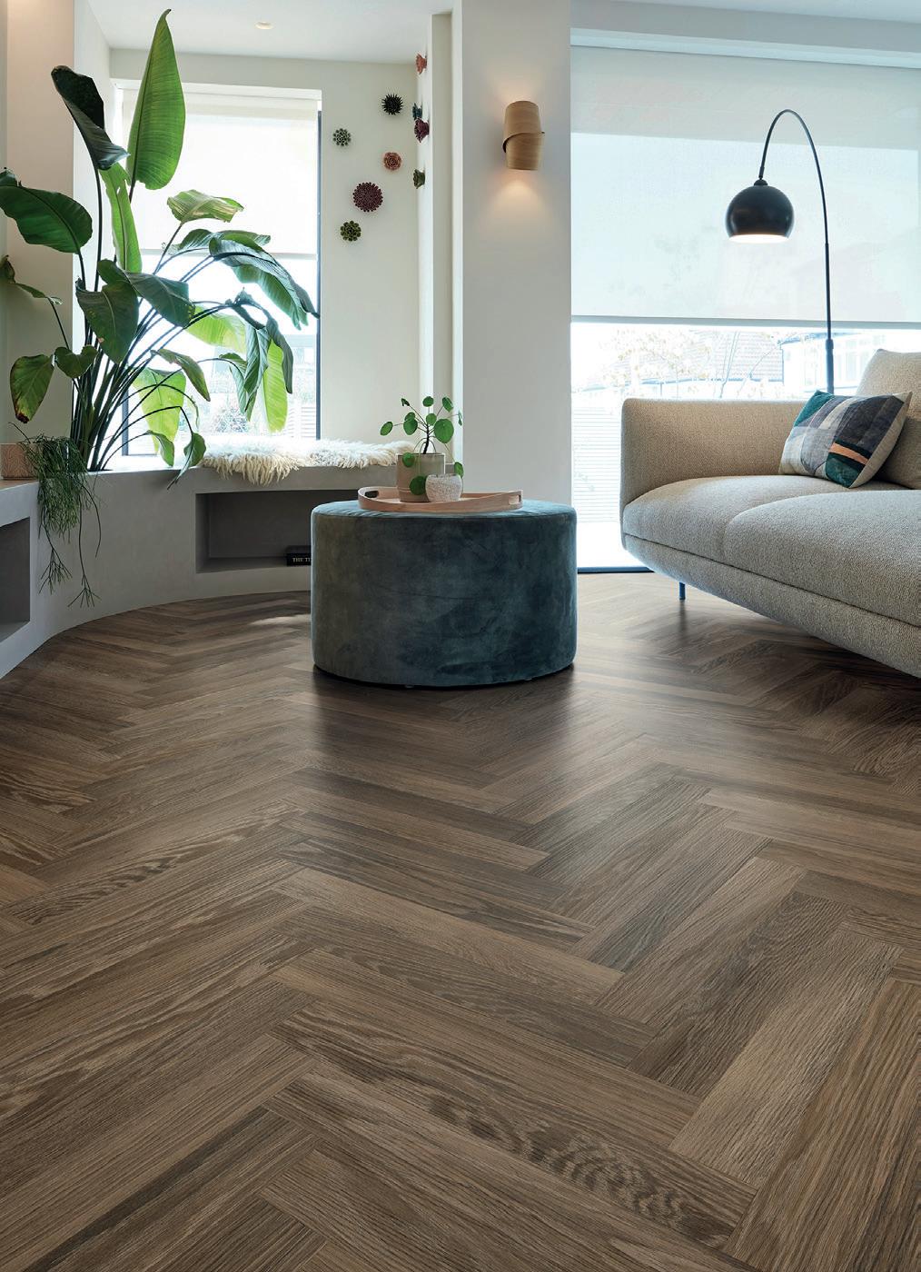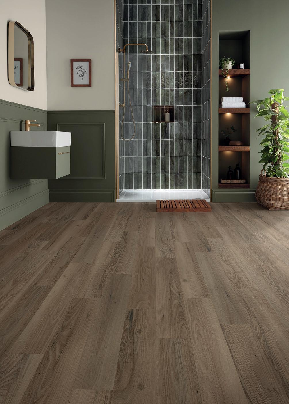 and installation options to suit every project. From the smoked richness of Russet Character Oak and the warm sophistication of Nutmeg Limed Oak to the cool elegance of River Marble and Natural Limestone, Knight Tile’s latest trend edit is designed to offer an inspiring palette for any modern home.