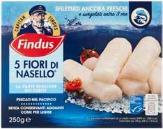 RIZZOLI LE DOLCI DEL MAR CANTABRICO FILETTI DI ALICI A BASSA SALATURA IN OLIO BIO 80 g al kg € 53,17 € 3,19 CAPITAN FINDUS 5 FIORI DI NASELLO