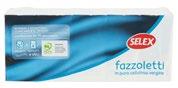 Segui il simbolo della convenienza >>>>> 0,95 SELEX Sacchi Pattumiera cm 50x60 20 pz 1,79 SELEX NATURA CHIAMA ecosacchi per raccolta di erenziata umido cm 50X60 10 pezzi 0,99 CASA BELLA SELEX candeggina pino, profumata litri 2 2,45 NATURA CHIAMA SELEX carta igienica maxi eco 2 veli 4 maxi rotoli 2,89 SELEX CASA BELLA Carta igienica 2 veli 500 strappi 4 rotoli maxi 0,89 SELEX proteggi slip soft cotton, comfort pz 20 0,89 SELEX Assorbenti Ripiegati ultra comfort 1,49 SELEX CASA BELLA Assorbi Colore pz 20 1,45 SELEX PRIMI ANNI salviettine detergenti per Bimbo pz 72 1,15 SELEX fazzoletti di carta 4 veli 9 pz 10 0,99 SELEX EGO Doccia Schiuma assortito ml 300 0,60 SELEX bastoncini cotonati 100 pezzi 1,25 SELEX spazzolini assortiti Spesa Difesa Spesa Difesa