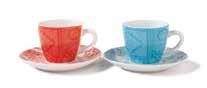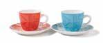 SET 2 TAZZINE + 2 PIATTINI in porcellana - colori rosso e azzurro