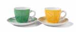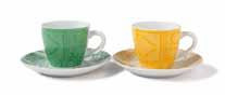 SET 2 TAZZINE + 2 PIATTINI in porcellana - colori verde e giallo