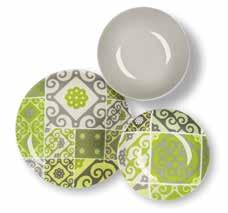 SERV. TAVOLA 12 PEZZI TRIBAL - 4 piani ø cm 26 - 4 fondi ø cm 21 - 4 frutta ø cm 20 in ceramica, lavabili in lavastoviglie