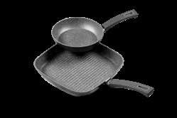 SET 2 PEZZI GRILL composto da padella diam. cm. 24 + bistecchiera cm. 28x28 - fondo adatto a tutti i tipi di cottura compresa induzionemanico in bachelite con effetto soft touch