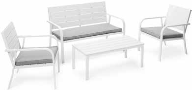 divano 2 posti + 2 poltrone + tavolino + cuscini seduta sfoderabili colore grigio - struttura portante in ferro verniciato a polvere bianco opaco tavolo dim. cm 98x48x39 h