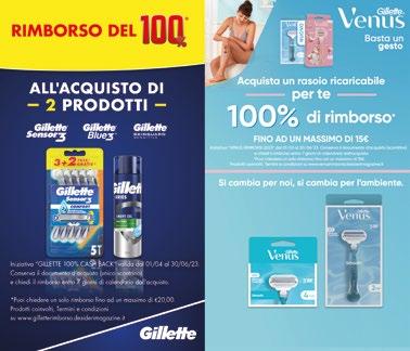 OFFERTE 2,90 PARODONTAX dentifricio original ml 75 2,45 SPUMA DI SCIAMPAGNA bagnodoccia latte di mandorla e burro di Karitè ml 650 1,49 PALMOLIVE bagnodoccia Naturals Fiori di Mandorlo con idratante, gel doccia mineral massage ml 220 2,29 GARNIER FRUCTIS shampoo/ balsamo assortiti ml 250/200 RISERVATO AI TITOLARI DI CARTA CLUB 4,90 L'ORÉAL maschera capelli Elvive Color Vive ml 300 7,90 OLIA colorazione capelli assortita RISERVATO AI TITOLARI DI CARTA CLUB 2,49 NIVEA gel style aqua shiny, extra strong ml 150 3,90 GARNIER SKINACTIVE acqua micellare bifase ml 400 1,99 LINES SETA assorbenti assortiti pz 10/12/16/20 1,49 FOXY Fazzoletti Cotton 10 + 2 pz 4,90 SCOTTONELLE carta Igienica 12 rotoli 11,50 GILLETTE VENUS lamette rasoi donna Smooth a 3 lame 4 pz 7,90 GILLETTE VENUS rasoio Donna Smooth a 3 lame, 1 Manico + 2 Lamette RISERVATO AI TITOLARI DI CARTA CLUB 2,90 NIVEA MEN gel barba sensitive ml 200
