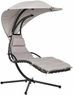 - dim. cm. 195x220x125 altezza - struttura tubolare in metallo, cuscino imbottito cm. 8, cappottina parasole, lettino rivestito in textilene colore beige, portata max kg. 100