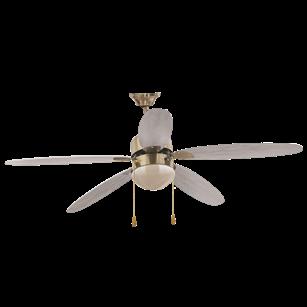 - potenza motore 60 w. 3 velocita' di rotazione, 5 pale in legno, plafoniera in vetro satinato con attacco per 2 lampade e27, telecomando multifunzione per gestire tutte le funzioni comodamente