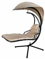 Poltrona sospesa Lux con parasole e cuscino imbottito - struttura in ferro verniciato, seduta e schienale in textilene - tessuto poliestere colore beige dim. cm 180x100x200 H