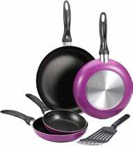 SET 4 PADELLE SAN IGNACIO con spatola in dotazione - diam. cm. 16 + 20 + 24 + 26 - rivestimento antiaderente - manico in bakelite