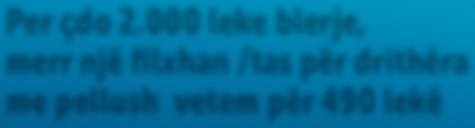 MËNGJES NË SHOQËRINË E MIQVE! Per çdo 2.000 leke blerje, merr një filxhan /tas për drithëra me pellush vetem për 490 lekë TOOTHLESS SHREK CHLOE RICO • TAS PËR DRITHËRA + PELLUSH 500 CL • FILXHANË PËR MËNGJES + PELLUSH 350 CL 7 cm 7 cm 7 cm 7 cm 12,5 cm © Universal City Studios LLC. All Rights Reserved. 12,5 cm 10,5 cm 10,5 cm Oferta speciale E PREMTE 01 SHTATOR DERI TË DIELËN 10 SHTATOR LARËS PLUHUR PËR RROBAT DIXAN 95 MASA 2090 lekë 2590 / -19% DETERGJENT I LËNGSHËM ACE 38 LARJE 1,9 LT 690 lekë 890 / -22% SHTESË HIGJENIZUESE PËR RROBAT ME ZBUTËS AMUCHINA I LËNGSHËM 1LT 339 lekë 469 / -27% NGJYRUES PËR RROBAT COLORERIA ITALIANA 350 GR 599 lekë 869 / -31% LETËR KUZHINE REGINA DI CUORI 3 SHTRESA 3 RROTULLA 329 lekë 429 / -23% LARËS PËR ENËT ME POMPË 500 ML 179 lekë 239 / -25% XHEL PËR PJATALARËSE FAIRY PLATINUM 650ML 579 lekë 799 / -27% LARËS PËR SIPËRFAQE TË NDRYSHME AMUCHINA 750 ML 359 lekë 549 / -34% LARËS PËR TUALETIN WC NET 750ML 209 lekë 269 / -22% USHQIM PËR QEN PATE PULE/QENGJ /VIÇ 300 GR 129 lekë 175 / -26% USHQIM PËR MACE LLOJE TË NDRYSHME 800 GR 499 lekë 635 / -21% LARËS HIGJENIZUES PËR PLLAKAT LYSOFORM 1,1 LT 369 lekë 479 / -22% ZBUTËS RROBASH I KONCENTRUAR AROMA TË NDRYSHME 750 ML 199 lekë 269 / -26%