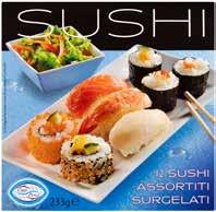7 SURGELATO PESCHERIA PESCE FRESCO E CERTIFICATO € 1,29 VONGOLE VERACI all'etto DA € 1,09 -27% € 0,79 MOSCARDINI all'etto DA € 1,49 -26 % € 1,09 FILETTO DI PERSICO AFRICANO all'etto DA € 1,19 -31 % € 0,82 ANELLI DI TOTANO GIGANTE DEL PACIFICO DECONGELATI all'etto € 3,89 OGGI PESCE SUSHI 12 SUSHI ASSORTITI SURGELATI 233 g al kg € 16,70 € 3,89 OCEAN 47 CUORI DI NASELLO SURGELATI 300 g al kg € 12,97 € 5,99 CAPITAN FINDUS FILETTI DI MERLUZZO SURGELATI 360 g al kg € 16,64 € 6,59 ARBI CODE DI GAMBERO PRODOTTO CONGELATO 400 g al kg € 16,48 € 6,49 MAREMUNDI ANELLI DI TOTANO SURGELATI 500 g al kg € 12,98 € 2,89 ARBI MISTO SCOGLIO 300 g al kg € 9,63 € 0,79 all'etto DA € 1,09 -27% BRANZINO 300/400 € 1,89 DA € 2,29 -17% CODE DI GAMBERO ARGENTINO DECONGELATE all'etto