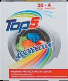 15 SPECIALE TOP 5 1,54 1,29 -16% TOP5 SGRASSATORE UNIVERSALE AL PROFUMO DI MARSIGLIA 1 l 1,49 1,25 -16% TOP5 CANDEGGINA SPRAY 1 l 3,79 3,19 -15% TOP5 SMACCHIATORE POLVERE OXYACTIVE 1,2 kg al kg € 2,66 2,48 1,99 -19% TOP5 FOGLI ASSORBICOLORE IN NONTESSUTO 20 + 4 Omaggio 1,29 0,99 -23% TOP5 WC CON CANDEGGINA OCEAN FRESH / PINO 1 l 0,95 0,79 -16% TOP5 SCIOGLICALCARE UNIVERSALE 500 ml al l € 1,58 1,99 1,69 -15% TOP5 CURA LAVASTOVIGLIE BIFASICO BLU 250 ml al l € 6,76 2,99 2,49 -16% TOP5 CURA LAVATRICE 2 x 250 ml al l € 4,98 1,19 0,99 -16% TOP5 DETERSIVO PIATTI ASSORTITO 750 ml al l € 1,32 1,69 1,39 -17% TOP5 DETERGENTE SGRASSANTE 1250 g al l € 1,11 1,79 PREZZO SPECIALE TOP5 10 FOGLI ASSORBICOLORE PROFUMATI + 4 IN OMAGGIO 2,99 2,49 -16% TOP5 LIQUIDO LAVATRICE 30 LAVAGGI 1,5 l al € 1,66 1,89 1,59 -15% TOP5 SMACCHIATORE UNIVERSALE BUCATO 500 ml al l € 3,18