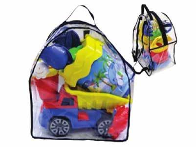 SET 9 PEZZI: camion con secchiello 17 cm, 2 formine e annaffiatoio in pratico zainetto