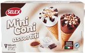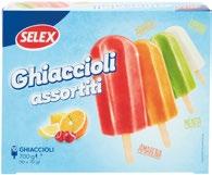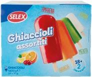 GOCCIOLE gelato pz 4 - g 360 al kg € 9,97 3,59 SAMMONTANA Coppa d'Oro amarena Fabbri, cioccolato Domori pz 4 - g 360 al kg € 6,53 2,35 MARS TWIX Ice Cream pz 4 x g 41.8 al kg € 16,96 2,85 LOACKER gelato biscotto Napolitaner, latte alpino pz 4 - g 264 al kg € 11,33 2,99 ALGIDA cornetti stellati assortiti pz 4 - g 228 al kg € 17,50 3,99 FERRERO Kinder Bueno pz 4 - g 248 al kg € 16,09 3,99 ALGIDA Magnum assortiti pz 3, pz 4 g 328/316 al kg € 12,16/12,63 3,99 ALGIDA Croccante pz 8 x g 58 al kg € 7,76 3,60 SELEX VEGETALE 100% 4 Coni di Gelato alla Soia g 300 al kg € 6,63 1,99 SELEX ghiaccioli assortiti 10 pz - g 700 al kg € 2,84 1,99 Convenienti Bloccati e Convenienti Bloccati e SELEX ghiaccioli assortiti 18+2 pezzi g 1400 al kg € 2,32 3,25