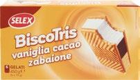 SELEX gelato assortito kg 1 3,45 VALSOIA Bontà e Salute gelato assortito g 500 al kg € 7,18 3,59 SELEX biscotris biscotti ripieni di gelato panna, cacao, zabaione g 450 al kg € 6,33 2,85 SELEX VIVI BENE biscotti ripieni di gelato senza glutine g 300 al kg € 9,97 2,99 SAPER DI SAPORI tartufo bianco, nero pz 2 - g 160 al kg € 12,44 1,99 SAMMONTANA torta st honorè surgelato g 750 al kg € 6,65 4,99 GASTONE LAGO roll break nocciola g 80 al kg € 11,13 0,89 SELEX 8 miniconi di gelato assortiti g 320 al kg € 9,34 2,99 SELEX gelato assortito kg 1,5 al kg € 3,33 4,99 BAHLSEN Perpetum fondente, wa eletten dark chocolate, g 97, g 100 al kg € 15,36 1,49 COPPA DEL NONNO pz 6 g 390 al kg € 9,36 3,65 G7 gelato assortito g 500 al kg € 5,90 2,95 ALGIDA Viennetta caramello g 320 al kg € 12,47 3,99
