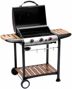 BARBECUE A GAS ASADO con forno e termometro, 3 bruciatori in acciaio + piezo, potenza totale kw 9, raccoglitore per olio, 2 ripiani laterali in acciaio verniciate a polvere (finitura simil legno), ganci per utensili, carrello con ruote e ripiano inferiore. griglia di cottura cm 60 x 42 e scaldavivande cm 60 x 12 - ingombro cm 122 x 57 x 98