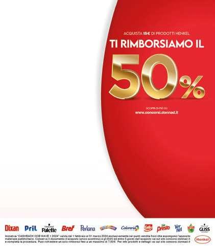BREF WC Blue active igiene pz 1 1,49 FINISH pastiglie lavastoviglie Power All in One Regular 22 lavaggi 3,90 SPUMA DI SCIAMPAGNA detersivo lavatrice liquido ecoricarica Marsiglia, fresco profumo litri 1,30 - 29 lavaggi 2,49 COCCOLINO ammorbidente concentrato Aria di Primavera 42 lavaggi - ml 980 2,99 TUSCANY asciugatutto 2 maxi rotoli 1,99 SOGNID'ORO Plus Le Camomille Melatonina 16 bustine x g 4 al kg € 43,59 2,79 ILLY capsule ca è espresso intenso, classico pz 10 - g 57 al kg € 68,25 3,89 SKIPPER ZUEGG bevanda senza zuccheri aggiunti assortita pz 3 x cl 20 al litro € 2,15 1,29 CHANTECLAIR sgrassatore universale marsiglia, limone, disinfettante ml 600 1,99