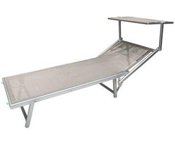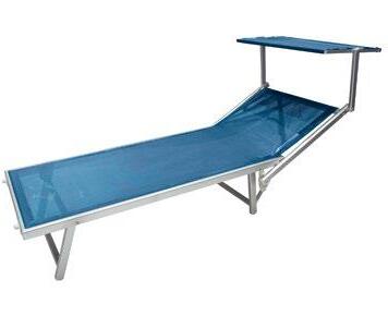 LETTINO MOD.RICCIONE struttura in alluminio, copertura in textilne, tettuccio parasole, schienale regolabile in 2 posizioni. Dim. cm.191x61x- h.cm.41. Disponibile nei colori ecrù, blu