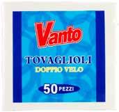 5 l € 8,12 +IVA al l € 1,63 VANTO ASCIUGAMANO DI CARTA A ROTOLO 6 pezzi € 9,76 +IVA VANTO TOVAGLIOLI