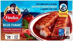 PESCHERIA 5 * IL PESCE CONFEZIONATO NON È PRESENTE NEI PUNTI VENDITA DI CIVIDATEORZINUOVIALBAREDOSAN GIOVANNI LUPATOTO AQUOLINA INSALATA ESOTICA 300 g al kg € 17,67 € 5,30 DA € 5,90 -10 % BRANZINO EVISCERATO 280 g al kg € 16,07 € 4,50 DA € 5,50 -18 % DA € 3,69 -18 % RIZZOLI LE MARINATE DEL MAR CANTABRICO FILETTI DI ALICI IN OLIO AGLI AGRUMI 80 g al kg € 37,38 € 2,99 OCEAN 47 FILETTI DI NASELLO SURGELATI 300 g al kg € 11,93 € 3,58 ARBI CODE DI GAMBERONI SCOTTATE CONGELATE 200 g al kg € 21,25 € 4,25 FROSTA MERLUZZO GRATINATO 360 g al kg € 9,69 € 3,49 CAPITAN FINDUS DELIZIE D'AMARE MERLUZZO GRIGLIATO IN SALSA AL POMODORO E BASILICO 250 g al kg € 13,96 € 3,49 FROSTA MERLUZZO GRATINATO CON PEPERONCINO PICCANTE 360 g al kg € 9,69 € 3,49 OCEAN 47 RANA PESCATRICE TRANCI 300 g al kg € 16,63 € 4,99 IL TUO PESCATORE GAMBERI PULITI GIÀ COTTI 300 g al kg € 27,74 € 7,49 12 BASTONCINI FINDUS 300 g al kg € 11,97 € 3,59 DA € 4,30 -20 % FILETTO TROTA AFFUMICATA CLASSICA 100 g al kg € 34,00 € 3,40