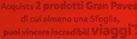 Concorso valido dal 29 giugno al 10 settembre 2023. Montepremi € 15.000. Regolamento su lavazza.it/vinci-buoni-estate DAL 29 GIUGNO AL 10 SETTEMBRE 2023 ACQUISTA ALMENO UN PRODOTTO LAVAZZA conserva lo scontrino e/o il codice univoco stampato all’interno della confezione, VAl su lavazza.it/vinci-buoni-estate VINCI SUBITO BUONI FINO A €1.000 A SCELTA TRA: CARBURANTE PER LE VACANZE LIBRI E MATERIALI PER LA SCUOLA alimentari LAVAZZA Capsule Ca è CompatibilI Nespresso Assortite 30 pz - g 171 €7,99 al kg € 46,73 LAVAZZA Ca è Crema e Gusto Espresso 2 pz x g 250 €4,94 al kg € 9,88 LAVAZZA Ca è Dek Deca einato g 250 €2,45 al kg € 9,80 NESTLÈ Cereali Fitness Assortiti g 375 €2,89 al kg € 7,71 NESTLÈ Cereali Fitness Original g 375 €2,19 al kg € 5,84 NESTLÈ Barrette Fitness al Cioccolato con Cereali 6 pz - g 141 2,29 FILICORI ZECCHINI Ca è per Moka Classico 2 pz x g 250 €3,99 al kg € 7,98 PAVESI Ringo Cacao/ Vaniglia g 165 €0,99 al kg € 6,00 BOLLINO 1 MULINO BIANCO Plumcake Integrali 10 pz - g 330 €2,39 al kg € 7,24 FERRERO Nutella g 750 €5,49 al kg € 7,32 ZUEGG I Frutteti di Oswald Confettura Assortita g 320 €1,75 al kg € 5,47 BOLLINO 1 DUFOUR Caramelle Assortite g 150 €1,00 al kg € 6,67 MULINO BIANCO Abbracci/ Pan di Stelle g 350 €1,94 al kg € 5,54