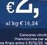 alimentari ALISA Olive Nere Intere/ Snocciolate g 425/ 340 €1,19 al kg € 5,29 CONSORCIO Filetti di Tonno al Naturale g 180 €4,83 al kg € 38,33 NOSTROMO Filetti di Tonno all'Olio d'Oliva g 180 €3,34 al kg € 18,56 ZAROTTI Filetti di Alici del Mar Cantabrico g 100 €3,14 al kg € 31,40 BARILLA Pesto Con/ Senz'Aglio g 190 €1,81 al kg € 9,53 MONTALBANO Le Bruschette Assortite g 130 €1,19 al kg € 9,15 KNORR Dado Vegetale 10 pz - g 100 €0,99 al kg € 9,90 CABER Za erano 2 bustine x g 0,125 €1,49 al kg € 5,96 BIFFI Ketchup/Maionese 6 bustine x g 10 €0,69 al kg € 11,50 DE CECCO Olio Extra Vergine di Oliva Classico litri 1 €6,39 SIMMENTHAL Carne Lessata 2 lattine x g 215 €5,20 al kg € 12,09 RIO MARE Tonno all'Olio di Oliva 6 lattine x g 100 €7,90 al kg € 13,17 SANTA ROSA Passata di Pomodoro g 700 €0,90 al kg € 1,29