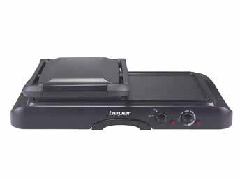 BEPER P101TOS501 BISTECCHIERA MULTIFUNZIONE, 1600W, Alluminio antiaderente, Griglia A Contatto, Piastra Liscia, Piastra Rigata, Temperatura regolabile, Luce di funzionamento, Piedini antiscivolo, Nero