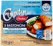PESCHERIA 5 * IL PESCE CONFEZIONATO NON È PRESENTE NEL PUNTO VENDITA DI PAVIA CAPITAN FINDUS I GRATINATI CON SALMONE/ MERLUZZO D'ALASKA 280/380 g al kg € 17,11 / 12,61 € 4,79 FROSTA FILETTI DA PESCA SOSTENIBILE NASELLO PESCATO NEL PACIFICO 300 g al kg € 16,30 € 4,89 ARBI MAZZANCOLLE TROPICALI SGUSCIATE 400 g al kg € 17,48 € 6,99 CODA GAMBERO ARGENTINO CRUDA CON GUSCIO SURGELATA 200 g al kg € 26,95 5,39 ARBI CONDIVONGOLA 450 g al kg € 6,42 € 2,89 HELIX FILETTI DI CERNIA 320 g al kg € 14,34 € 4,59 FROSTA FILETTO DI MERLUZZO CARBONARO 240 g al kg € 12,46 2,99 MAREMUNDI ANELLI DI TOTANO SURGELATI 500 g al kg € 12,98 € 6,49 CAPITAN FINDUS 5 BASTONCINI CON 100% FILETTI DI MERLUZZO 125 g al kg € 16,72 € 2,09 CAPITAN FINDUS FILETTI DI PLATESSA ALLA MUGNAIA 250 g al kg € 15,56 € 3,89 ARBI FRITTO MISTO CODE DI MAZZANCOLLE E ANELLI DI TOTANO 280 g al kg € 16,75 € 4,69 DA € 7,20 -10 % INSALATA DI MARE ATM 300gr al kg € 21,50 € 6,45 DA € 8,90 -15 % FILETTO SALMONE 250 g al kg € 30,20 € 7,55 DA € 5,89 -23 % COZZE COTTE ALLA TARANTINA / ROMANA 400 g al kg € 10,95 € 4,49