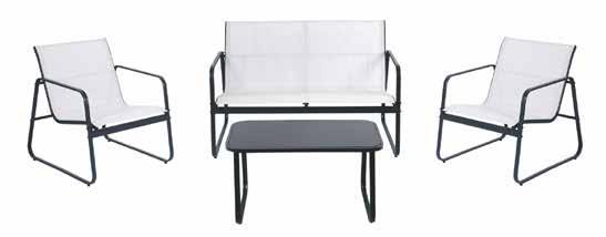 SET 4 PEZZI SALOTTINO EMILY IN RESINA COLORE ANTRACITE CON CUSCINI - DIMENSIONI: SEDIA (X2): CM. 68X64X75, DIVANO CM. 111X68X75, TAVOLO CM. 65X47X42